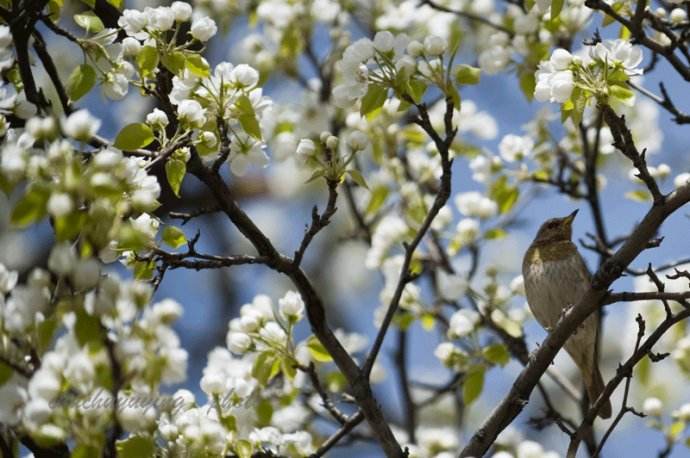 桃樹、杏樹、梨樹,你不讓我,我不讓你,都開滿了花趕趟兒。紅的像火,粉的像霞,白的像雪?;ɡ飵е鹞秲?;閉了眼,樹上仿佛已經(jīng)滿是桃兒、杏兒、梨兒?;ㄏ鲁汕С砂俚拿鄯湮宋说佤[著,大小的蝴蝶飛來飛去。野花遍地是:雜樣兒,有名字的,沒名字的,散在草叢里,像眼睛,像星星,還眨呀眨的。
