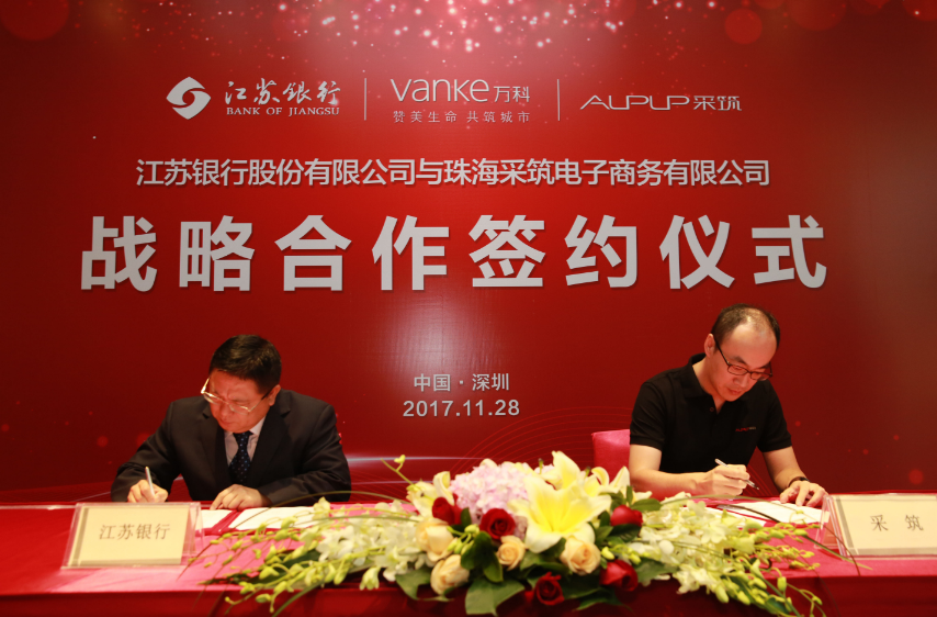 11月28日,采筑電商平臺發(fā)布會暨與江蘇銀行戰(zhàn)略合作協(xié)議簽約儀式在前海萬科國際會議中心成功舉行。萬科集團副總裁王蘊女士和江蘇銀行運營總監(jiān)趙輝先生受邀出席儀式并致辭,江蘇銀行行長助理兼深圳分行行長李敏與采筑電商平臺總經(jīng)理都軍代表雙方簽署戰(zhàn)略合作協(xié)議。總行公司業(yè)務部周愛國總經(jīng)理、深圳分行張慶光副行長等一行出席發(fā)布會暨簽約儀式。