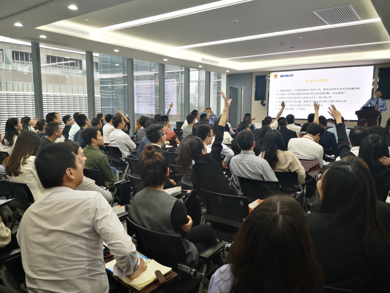 反詐騙知識(shí)有獎(jiǎng)問答的現(xiàn)場(chǎng)互動(dòng)環(huán)節(jié)掀起了講座小高潮,皇庭中心商戶代表積極踴躍回答問題,現(xiàn)場(chǎng)氣氛十分熱烈。