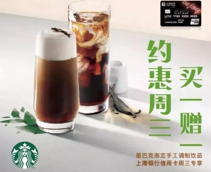 約"惠"周三 刷上海銀行信用卡享星巴克買一贈(zèng)一