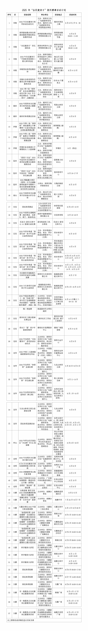 2025年8月8日是我國(guó)第17個(gè)“全民健身日”。今年,深圳迎來(lái)了第十五屆全國(guó)運(yùn)動(dòng)會(huì)和殘?zhí)貖W會(huì),為積極響應(yīng)“全民全運(yùn),全運(yùn)惠民”的理念,深圳在“全民健身日”期間精心組織了57項(xiàng)群眾喜聞樂(lè)見(jiàn)的賽事活動(dòng),涵蓋球類、徒步、騎行、水上等多個(gè)項(xiàng)目,139家體育場(chǎng)館面向市民免費(fèi)或優(yōu)惠開(kāi)放,降低運(yùn)動(dòng)門檻,惠及更多市民。