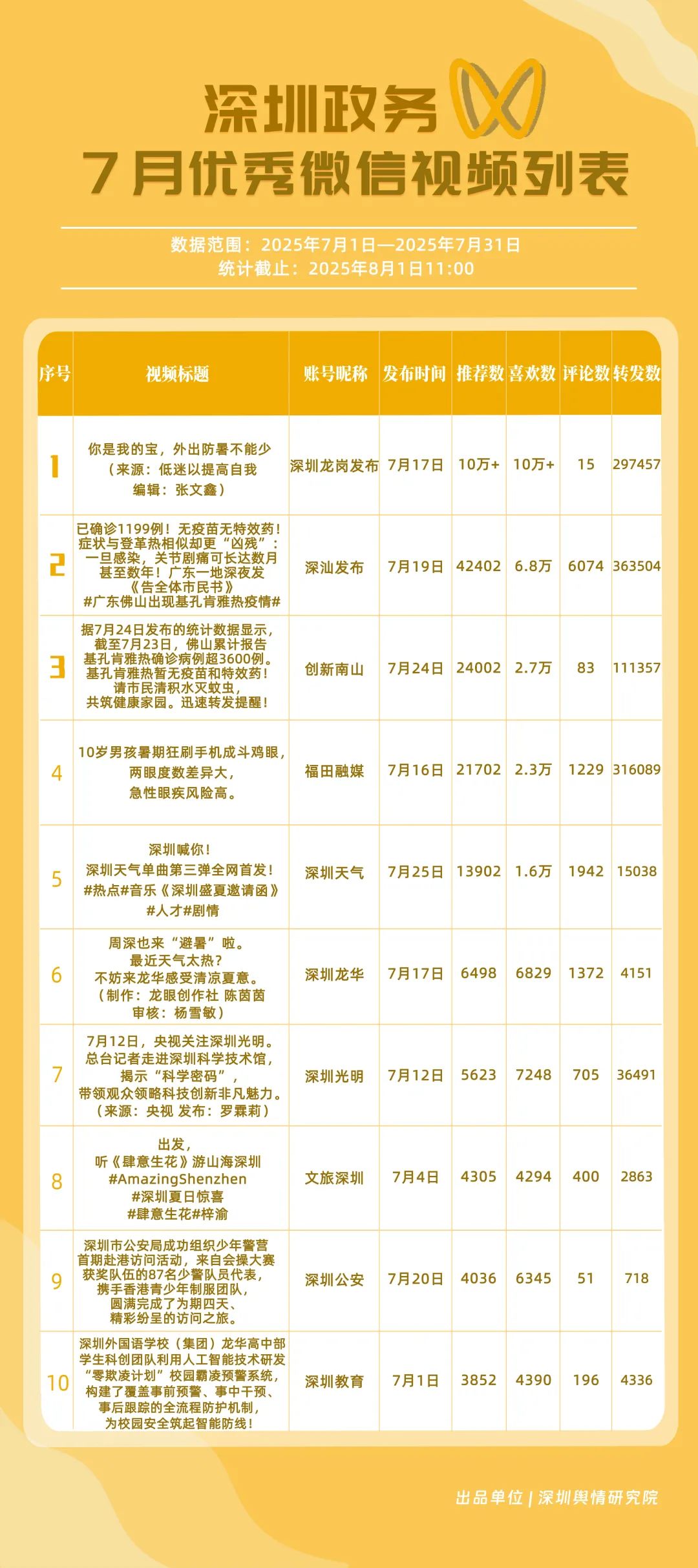 四、7月深圳優(yōu)秀政務新媒體賬號