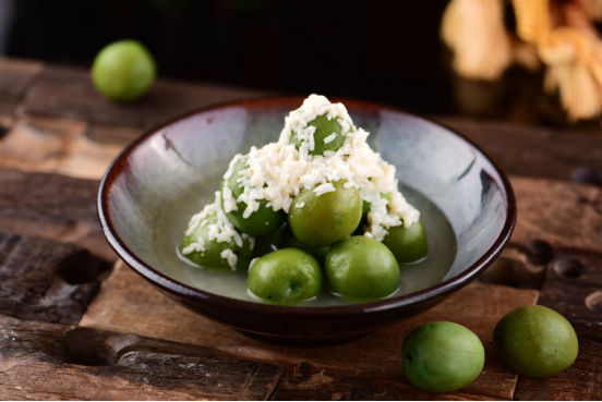 青梅,酸脆透甜,生津止渴,開胃健脾;酒釀,醇醇米香,帶著酒的芳香,益氣活血。搭配起來冰鎮(zhèn),炎炎夏日,吃上幾口,自是五腑清涼。