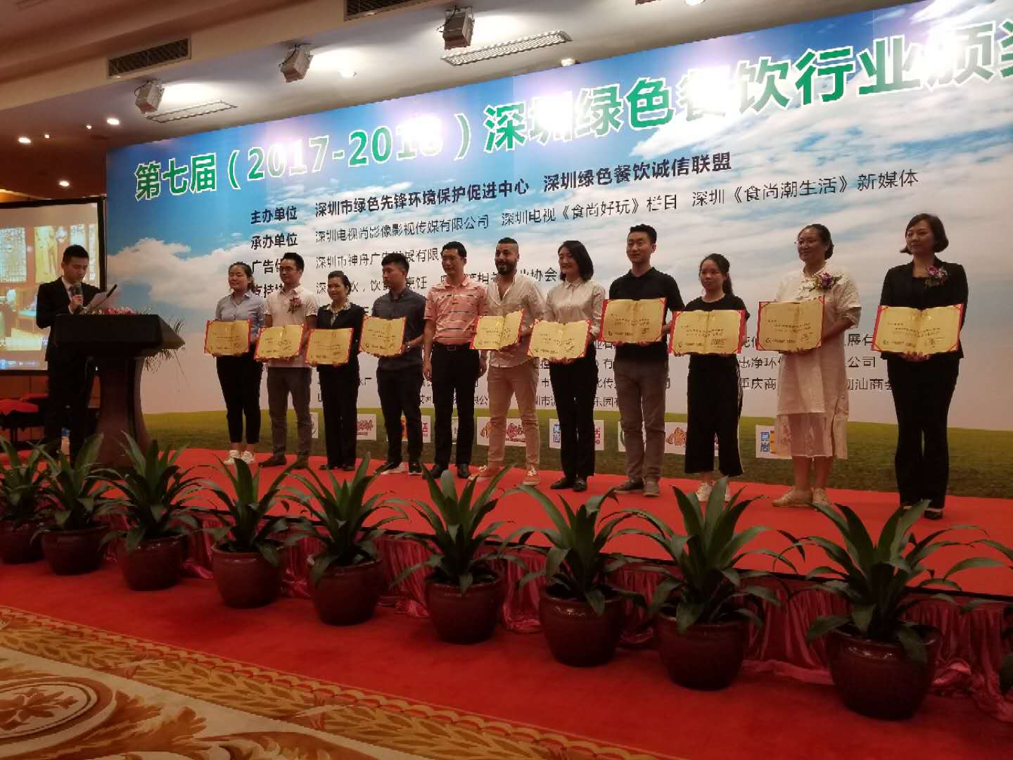 本次活動(dòng)的推介單位——深圳電視《食尚好玩》欄目,全體編導(dǎo)、采編、策劃人員,經(jīng)過一年多的基層采訪及大范圍的摸底,從深圳餐飲行業(yè),近千家的餐飲企業(yè)中通過網(wǎng)絡(luò)、微信、微博、電話投票等,并由深圳《食尚潮生活》、以及深圳各大媒體的美食記者聯(lián)合推薦等方式,挑選出了一批(2017 --2018 )深圳綠色餐飲行業(yè)的優(yōu)秀代表。