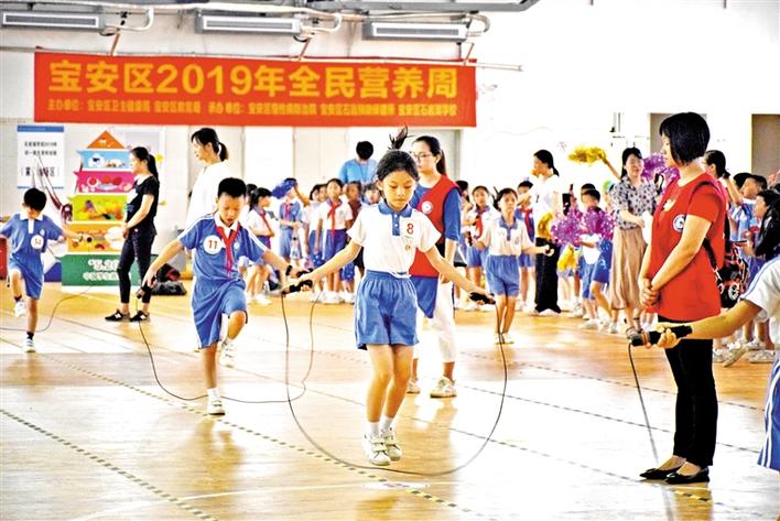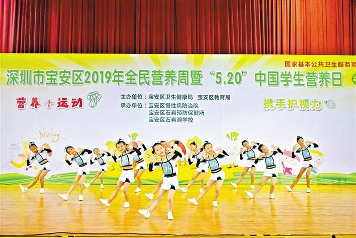 寶安日報(bào)5月21日訊 你每天運(yùn)動夠60分鐘了嗎?每天都有吃蔬菜水果嗎?如今,已有越來越多的人重視營養(yǎng)、運(yùn)動與人體健康的關(guān)系,每年的5月20日是中國學(xué)生營養(yǎng)日,今年的主題是“營養(yǎng)+運(yùn)動,攜手護(hù)視力”。5月20日下午,寶安區(qū)2019年全民營養(yǎng)周暨“5·20”中國學(xué)生營養(yǎng)日在石巖湖學(xué)校舉行。