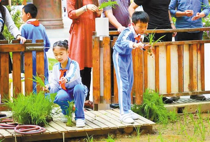 在“校園種水稻”這門校本課程的基礎上,學校又開拓了《觸摸春天》《稻田童話》《廢紙的美麗蛻變》《七彩園藝》《陶藝樂繽紛》《果香小鎮(zhèn)》等一系列校本課程。