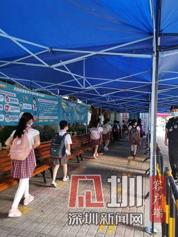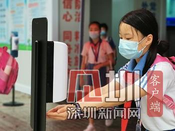 我起了個(gè)大早,高高興興地來到學(xué)校。在校門口不遠(yuǎn)處,我看見一排排金色小腳印在望著我笑,好像在對我說:“歡迎你返校!”進(jìn)入校園后,熟悉的林蔭道下多了許多的大帳篷,帳篷中間有一個(gè)巨大的測溫箱。走過測溫箱,一排感應(yīng)免洗洗手液站得筆直,正在招呼我們趕緊洗手消毒。因?yàn)樾鹿谝咔椋覀兊男@不一樣了,多了許多守護(hù)我們健康的安全小衛(wèi)士。