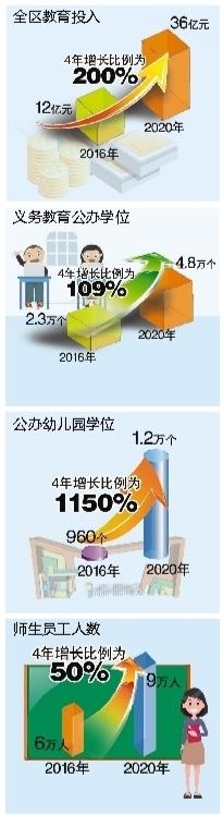 加大教育投入,教育支出增長(zhǎng)200%;加快公辦學(xué)校和幼兒園建設(shè),公辦幼兒園從2所增加到31所,公辦園學(xué)位從960個(gè)增加到1.2萬(wàn)個(gè),增長(zhǎng)1150%;新建、擴(kuò)建公辦中小學(xué)12所,義務(wù)教育公辦學(xué)位從2.3萬(wàn)個(gè)增加到4.8萬(wàn)個(gè),增長(zhǎng)104%。短時(shí)期內(nèi)實(shí)現(xiàn)公辦學(xué)位保障率全市遙遙領(lǐng)先。