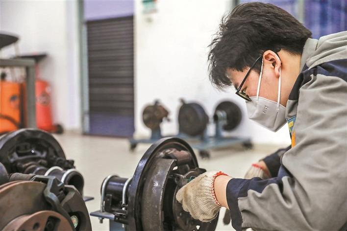 深圳市第二職業(yè)技術(shù)學(xué)校學(xué)生參加汽修專業(yè)實訓(xùn)。