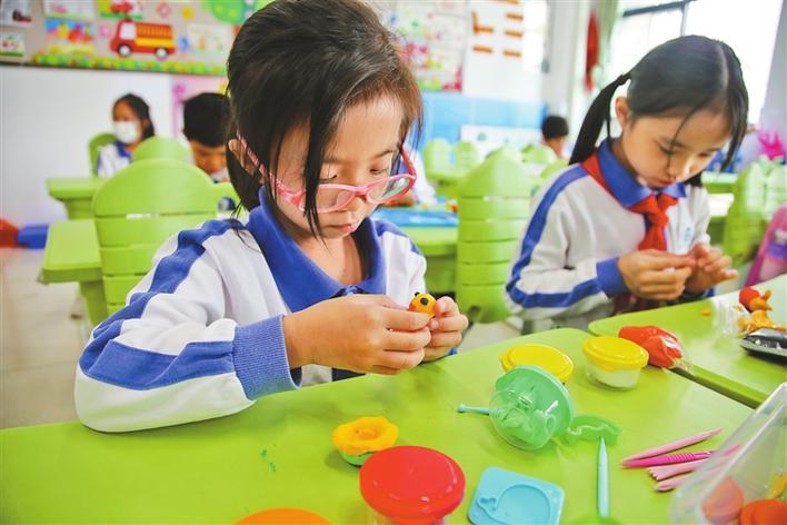 羅湖教科院附屬學(xué)校二年級同學(xué)正在上黏土課。 本版圖片除署名外均由深圳晚報記者 陳玉 劉夏藍 攝