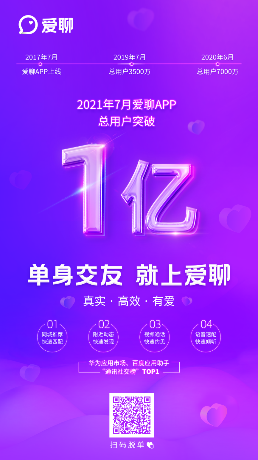 真實(shí)高效是年輕人交友剛需。打造真實(shí)、高效的連接將為陌生人社交打開新增量空間,毫無疑問,愛聊憑借真實(shí)高效再進(jìn)階,其用戶數(shù)突破1億里程碑,成為單身交友“解決方案”的新物種,讓單身交友具備新的想象空間。