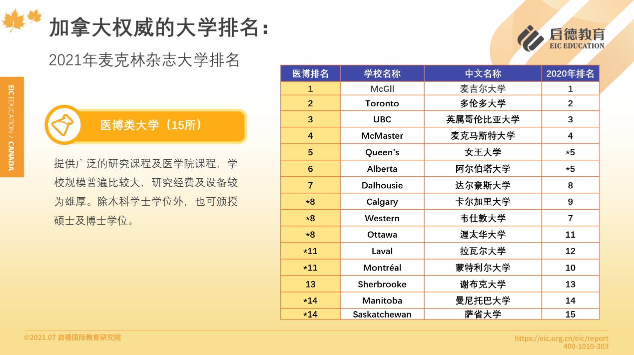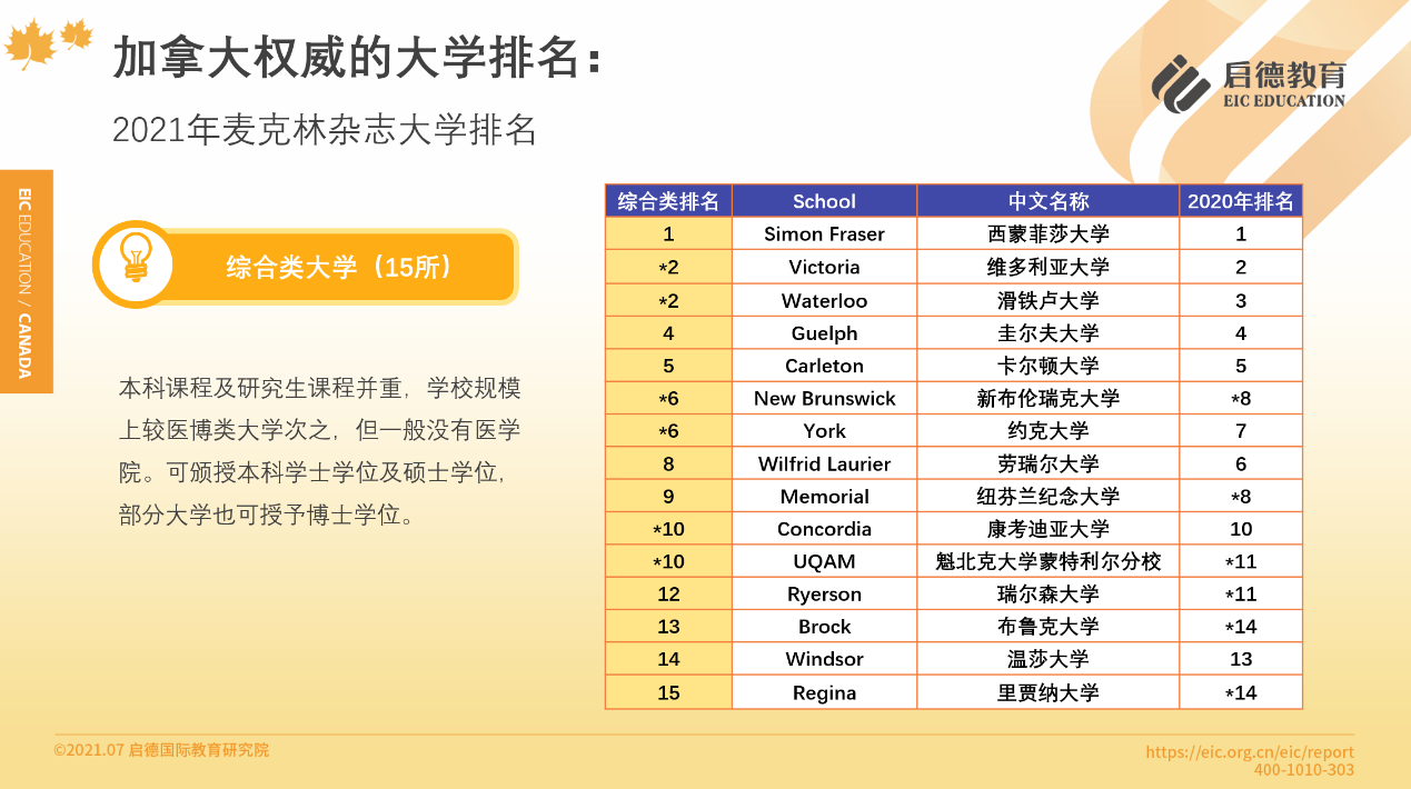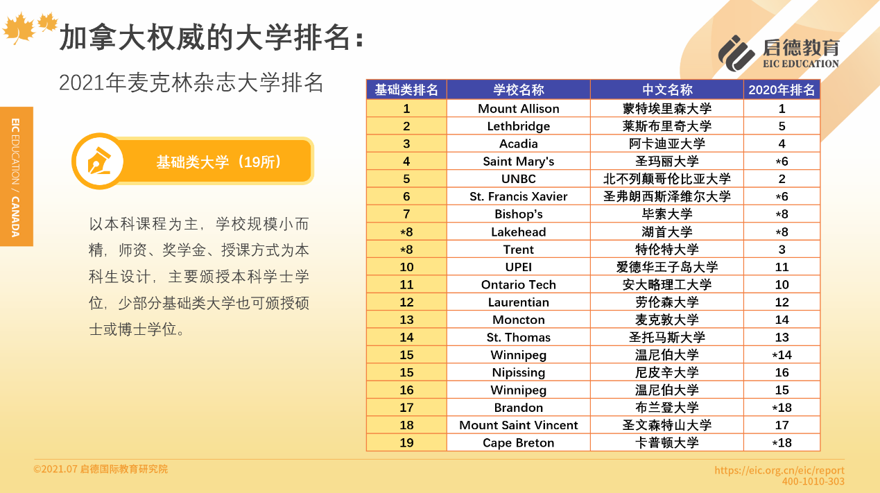 加拿大高校以公立為主,各具特色與優(yōu)勢(shì),教育質(zhì)量在官方評(píng)價(jià)體系中并沒有顯著區(qū)別,因此,啟德教育建議,在選擇院校時(shí),除了參考麥克林雜志排名,還應(yīng)該通過院校官網(wǎng)或者留學(xué)顧問,更全面地了解加拿大高校的實(shí)力。麥克林排名根據(jù)加拿大大學(xué)的類型,分為醫(yī)博類、綜合類、基礎(chǔ)類三個(gè)排名,值得一提的是,連續(xù)21年位于基礎(chǔ)類大學(xué)排名榜首的蒙特艾莉森大學(xué),是加拿大本科畢業(yè)生中獲得羅德獎(jiǎng)學(xué)金人數(shù)最多的學(xué)校,羅德獎(jiǎng)學(xué)金又被稱為“全球本科生諾貝爾獎(jiǎng)”。此外,基礎(chǔ)類排名第19的卡普頓大學(xué),在最近一期的Analytics Insight雜志中,與美國麻省理工學(xué)院、英國華威大學(xué)等一同入選了2021年10家最著名的分析和數(shù)據(jù)科學(xué)機(jī)構(gòu)。
