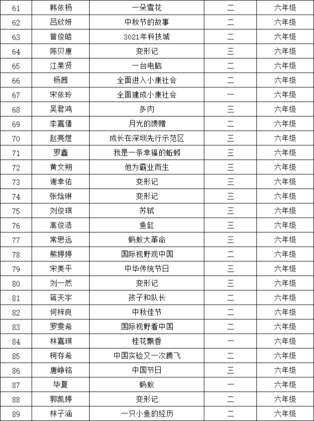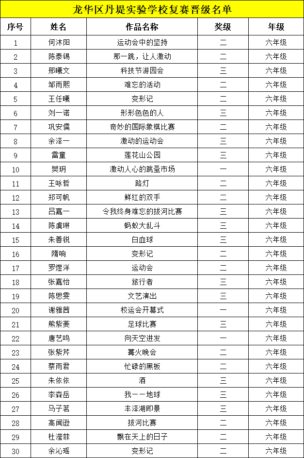 自2021年1月,活動(dòng)征稿啟動(dòng)以來,獲得了深圳市廣大中小學(xué)生、教師、文學(xué)愛好者的熱烈響應(yīng)積極參與,吸引了深圳百余所學(xué)校的上萬人關(guān)注報(bào)名?,F(xiàn)公布龍華區(qū)丹堤實(shí)驗(yàn)學(xué)校晉級復(fù)賽名單如下: