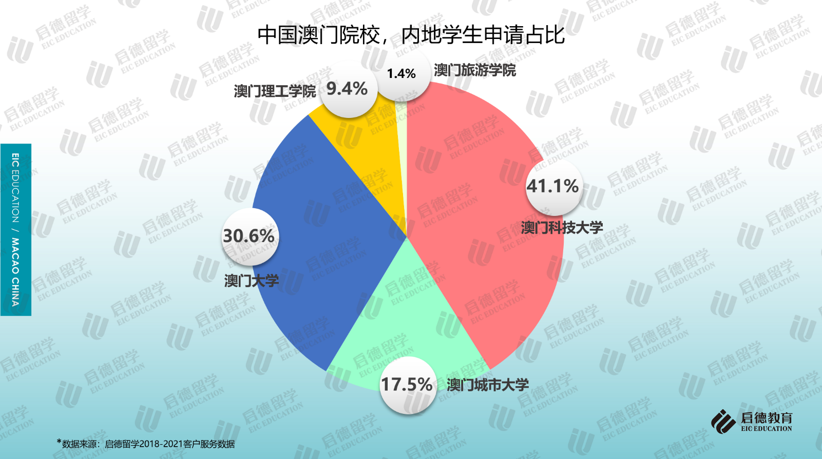 另一組啟德留學(xué)的澳門院校申請人來源數(shù)據(jù)顯示,廣東省廣州、珠海、深圳三個城市的學(xué)生申請澳門院校的占比超過50%,北京學(xué)生占比13%,分析原因,除了廣東省與澳門在文化上、生活方式上的親近性以及距離較近的優(yōu)勢外,也與澳門院校對部分區(qū)域申請人的加分政策有一定關(guān)系。如澳門大學(xué)對北京市及廣東省高考考籍的學(xué)生有加5分的優(yōu)惠政策,而對于廣東省珠海市考籍和橫琴戶籍的應(yīng)屆高考生又特別優(yōu)待,實施15-20分的加分優(yōu)惠政策。