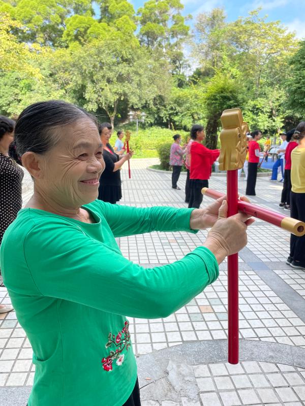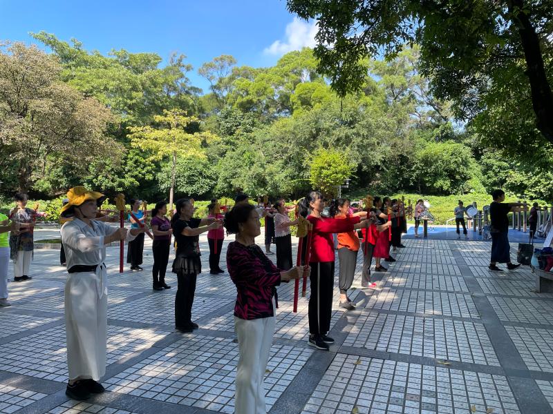 讀特客戶端·深圳新聞網(wǎng)2021年11月26日訊(記者 陳彬)這一兩個(gè)月來(lái),每天早上,有一群精氣神十足的阿姨們,手持一種舞蹈道具,在南頭古城臨中山公園的地方,非常有意思地跳著一種舞蹈,成為了南頭古城的一道風(fēng)景。在她們舞蹈時(shí),時(shí)不時(shí)會(huì)有路人走近好奇地問:阿姨,你們這是在跳一種韓國(guó)舞蹈、還是日本舞蹈?她們會(huì)指著旁邊的KT板展架說:好好看看那上頭,學(xué)習(xí)學(xué)習(xí)我們中國(guó)文化。