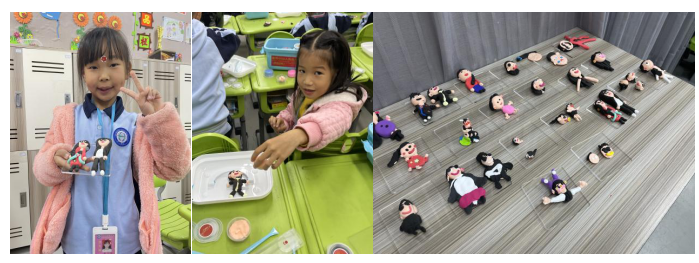 翌日,老師們?cè)俅蝸?lái)到華一校園,為小學(xué)部104班的學(xué)生們帶來(lái)了一場(chǎng)以“給老師塑像”為主題的泥塑體驗(yàn)課。課堂中,老師先是一步步引導(dǎo)孩子該如何觀察他們的模特,后又鼓勵(lì)他們大膽動(dòng)手,釋放自己的想象力和創(chuàng)造力。孩子們也都“各顯神通”,用自己獨(dú)特的方式去表現(xiàn)他們眼中老師的形象。有的為老師做了蝴蝶結(jié),有的為老師帶上耳環(huán),有的給老師換衣服,有的給老師戴眼鏡,氣氛十分活躍。在課堂結(jié)束時(shí),大家都興奮地捧著自己的作品,與老師、同學(xué)們分享著創(chuàng)作的喜悅。