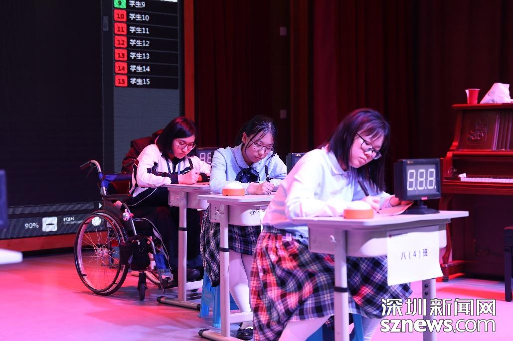 校決選現(xiàn)場(chǎng),初中的同學(xué)們通過(guò)猜詞、聽(tīng)寫(xiě)、國(guó)學(xué)知識(shí)搶答三個(gè)環(huán)節(jié),帶來(lái)了精彩的視聽(tīng)盛宴。他們用掌聲相互鼓勵(lì),用眼神激勵(lì)彼此,整個(gè)活動(dòng)下來(lái),溫暖又特別。有學(xué)生告訴記者,他們非常期待深圳市復(fù)選,希望借復(fù)選的環(huán)節(jié)——國(guó)學(xué)知識(shí)測(cè)評(píng)、優(yōu)秀圖書(shū)推薦演講和國(guó)學(xué)才藝秀磨練自己,提升自己。