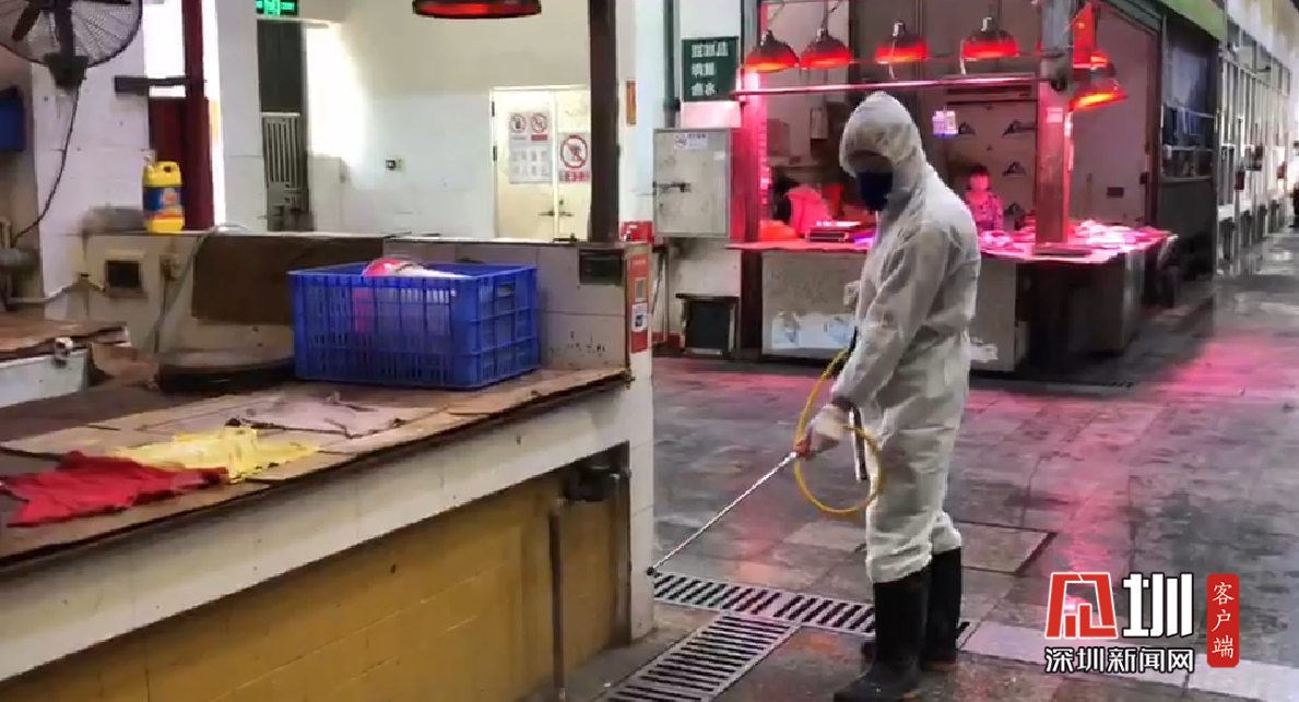 在現(xiàn)場,記者看到有2名消殺工作人員正在對市場的下水道進(jìn)行消殺清潔?!澳壳皠訖z所負(fù)責(zé)福田區(qū)31個農(nóng)批市場的消殺工作,我們從1月22號就開始對農(nóng)貿(mào)市場進(jìn)行消毒,每天消殺一次,消殺的濃度比之前有所增加,比平時多了一倍。消殺清潔工作對于疫情防控非常重要,效果也非常明顯。”動檢所工作人員說道。