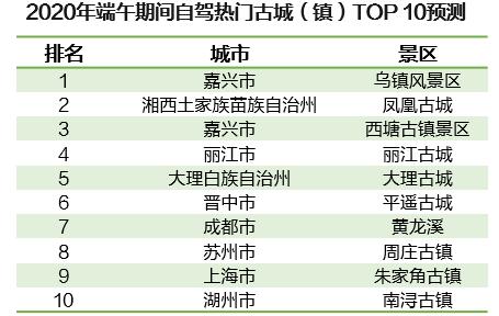 根據(jù)高德地圖交通大數(shù)據(jù)預(yù)測,端午期間全國熱門自駕古城(鎮(zhèn))TOP10一半分布在長三角區(qū)域,預(yù)計(jì)嘉興-烏鎮(zhèn)風(fēng)景名勝區(qū)自駕熱度最高,其次是湘西-鳳凰古城以及嘉興-西塘古鎮(zhèn)景區(qū)。