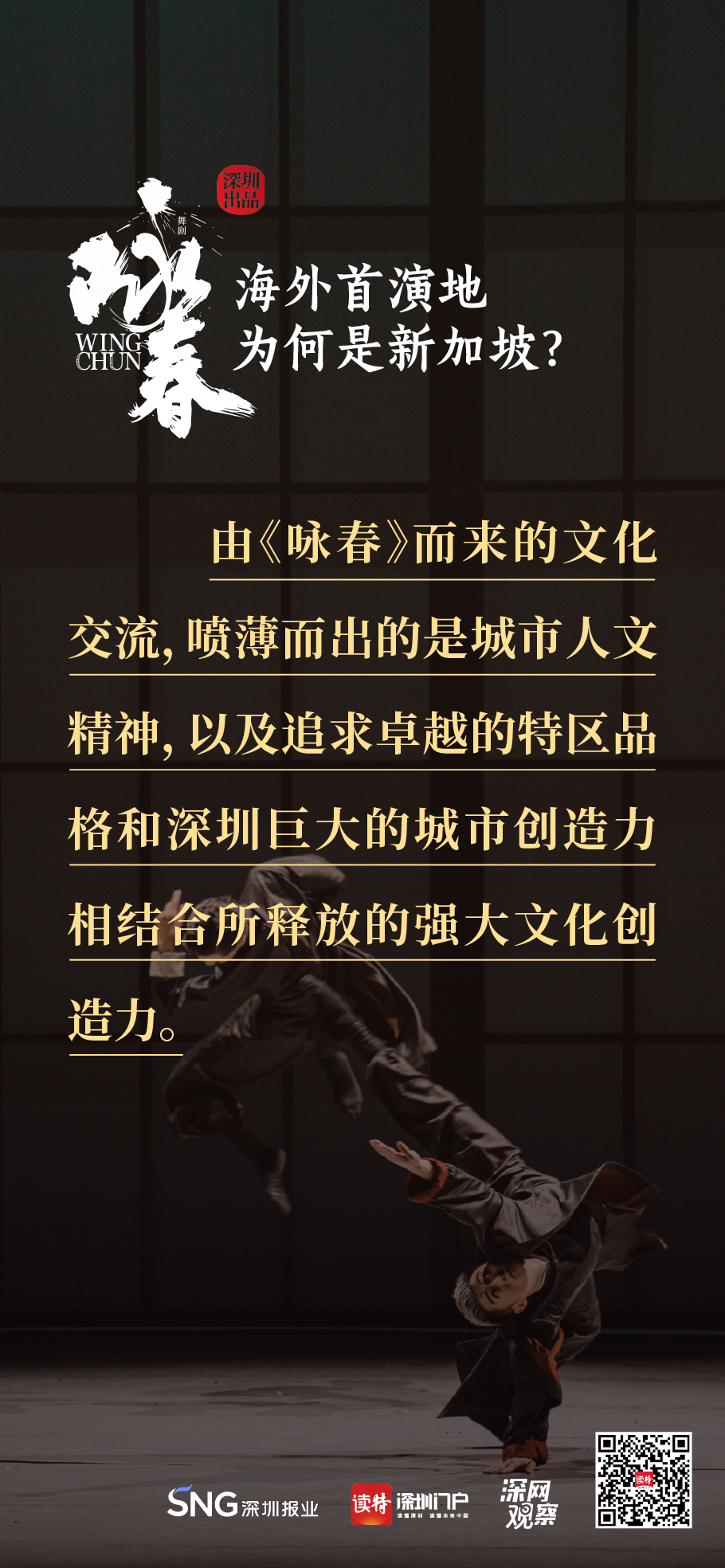 《詠春》書寫平凡英雄的傳奇,開詠春的一扇門,只為追尋心中的那一束光?!对伌骸?,連接鵬城與獅城,嶺南大地的人文史脈,輕叩著新加坡華人圈的心扉,傳統(tǒng)文化的底蘊讓兩地更加親近,海外首演,不二之選。