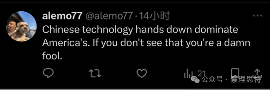 (中國的技術主導著美國的技術。如果你看不到這一點,你就落后了。)