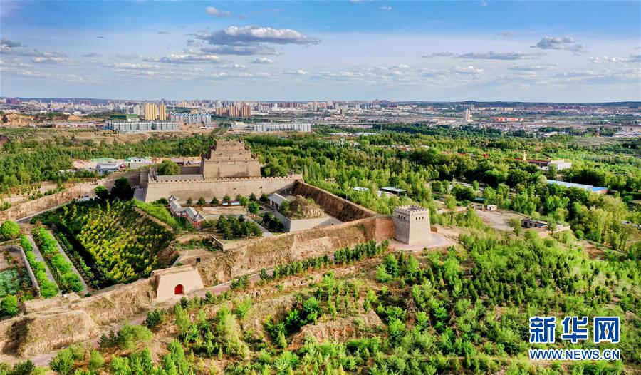 5月24日拍攝的樹林環(huán)繞的榆林市鎮(zhèn)北臺(無人機照片)。 2017年4月起,地處毛烏素沙漠南緣的陜西省榆林市開展主城區(qū)百萬畝生態(tài)圈及環(huán)城防護林帶建設,對荒山荒地荒沙、撂荒地、不宜耕作土地、閑置土地進行造林綠化,對低效林地進行提升改造。2019年11月,榆林市被授予“國家森林城市”稱號。昔日區(qū)域內的裸露土地全面綠化,城市及周圍處處綠樹成蔭,呈現(xiàn)出一派“塞上森林城”的美景。 新華社記者陶明攝