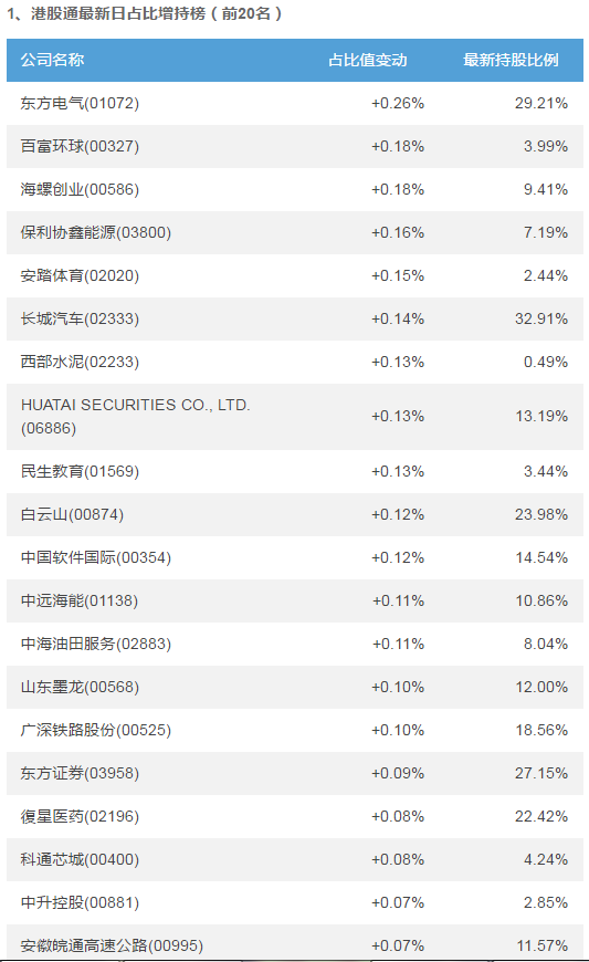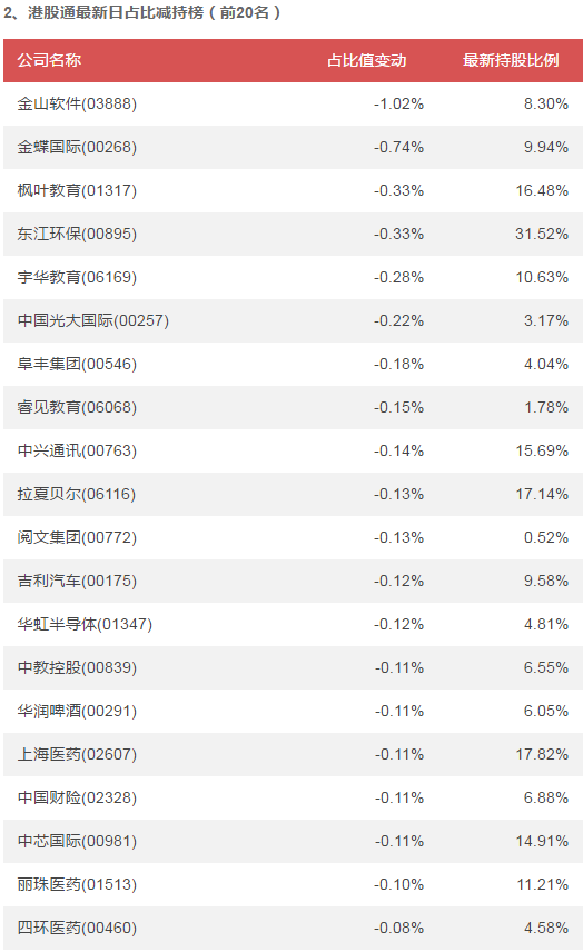 備注:以上數(shù)據(jù)由智通機器人根據(jù)港交所數(shù)據(jù),經過人工智能運算后自動生成,并不保證數(shù)據(jù)100%準確;變動百分比為變動絕對值,如前一日占比為1%,后一日為2%,則變動百分比為增加1%。