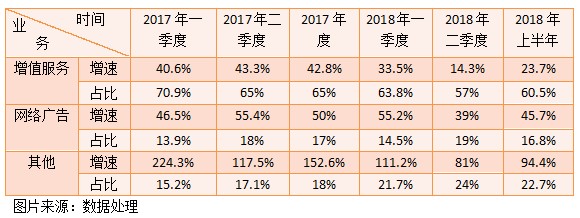 下面我們看該公司業(yè)務(wù)收入的變化,先看大類分錄,有增值業(yè)務(wù)、網(wǎng)絡(luò)廣告和其他業(yè)務(wù)。