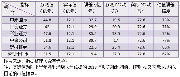 舜宇光學(xué)的市值為998億港元,僅為騰訊的3%,騰訊波動(dòng)一個(gè)點(diǎn)的市值,就相當(dāng)于舜宇光學(xué)波動(dòng)33.3%,肯定比不了。不過(guò)以打臉的程度來(lái)說(shuō),舜宇光學(xué)有點(diǎn)過(guò)了,預(yù)測(cè)值與實(shí)際值的估值誤差達(dá)70%左右,這臉打的確實(shí)響。