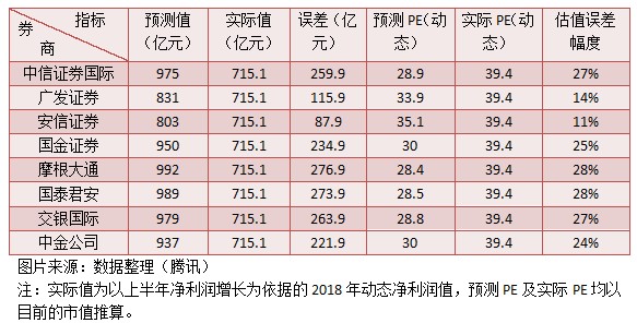 騰訊的打臉程度要比舜宇光學(xué)輕的多,最小的估值誤差為11%,最大的為28%,券商總是把估值看的高一些,這樣打臉程度讓很多券商不會(huì)很難堪。以騰訊ADR的表現(xiàn),16日該公司的股價(jià)不會(huì)很理想,而且參照美股前晚的表現(xiàn),恒指可能要遭受較大的跌幅沖擊。
