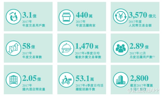 智通財(cái)經(jīng)APP觀察到,2017年美團(tuán)交易額達(dá)到3570億元,同時(shí)公司還擁有3.1億年交易用戶以及440萬(wàn)活躍商家。此外,2017年公司MAU數(shù)據(jù)已達(dá)2.89億。