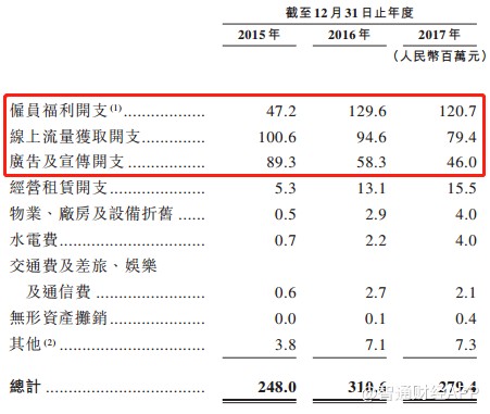 土巴兔的銷(xiāo)售人員開(kāi)支從2015年的4720萬(wàn)元大幅增至2016年的1.29億元,并在2017年維持1.2億元左右高位。不過(guò)隨著公司規(guī)?;\(yùn)營(yíng)的展開(kāi),公司線(xiàn)上買(mǎi)量開(kāi)支卻從1億元降至7940萬(wàn)元。