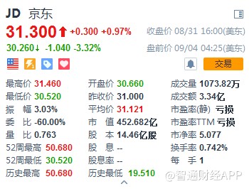 截至發(fā)稿,京東(JD)盤前跌3.32%,跌幅一度曾達(dá)4%。(林宥辰)