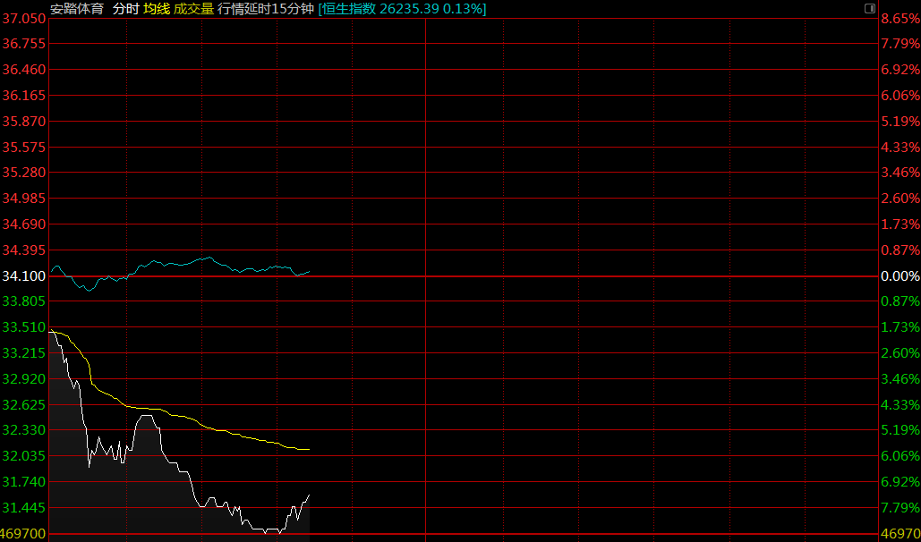 智通財(cái)經(jīng)APP獲悉,安踏體育(02020)盤中跌至31.2港元,創(chuàng)年內(nèi)新低,截至10時50分,跌8.5%,報(bào)價31.2港元,成交額2.28億。