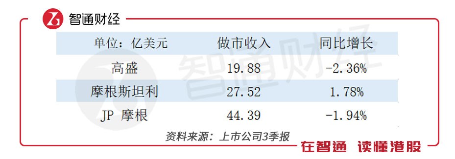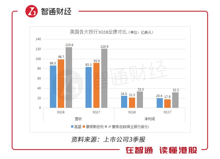 從第3季度營(yíng)收規(guī)模上看,高盛墊底,JP摩根的營(yíng)收和利潤(rùn)都是最大,摩根斯坦利凈利潤(rùn)最高??磥恚靶∧Α?JP摩根)不是真的“小”,“大摩”(摩根斯坦利)也不是真的“大”。