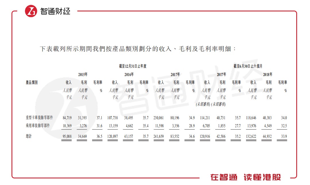此外,天瑞在招股書中指出,就公司近期財(cái)務(wù)表現(xiàn)而言,公司的收入從截至2017年10月31日止10月的約1.97億元減至截至2018年10月31日止10個(gè)月的約1.92億元,略微減少為2.6%。然而,公司截至2018年10月31日止4個(gè)月的毛利率為35.8%,略高于上年同期的34.0%。鑒于收入減少并不明顯,以及與2018年上半年相比,公司截至2018年10月31日止4個(gè)月實(shí)現(xiàn)穩(wěn)定的毛利率及月平均毛利,因此并無跡象顯示公司的重型卡車裝飾零部件業(yè)務(wù)分部會(huì)顯著下跌。