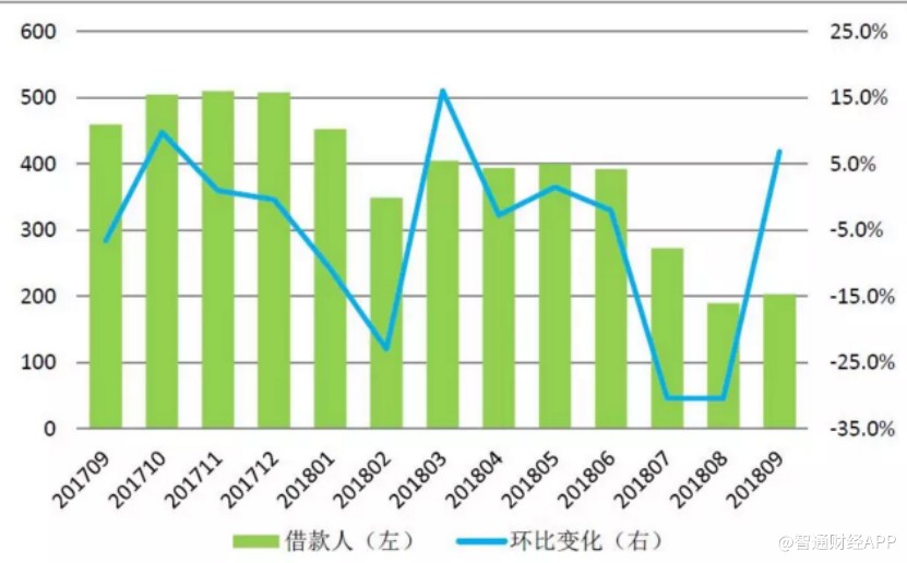 從統(tǒng)計數(shù)據(jù)可以看出,從今年6月開始,P2P網(wǎng)貸行業(yè)借款人人數(shù)出現(xiàn)大幅下滑,重疊上圖正是行業(yè)監(jiān)管加強開始的時間點。到了9月,借款人人數(shù)首次開始回升,說明市場已經(jīng)感受到監(jiān)管后行業(yè)規(guī)范化的提高,這正說明市場對P2P行業(yè)信心正在出現(xiàn)回升。