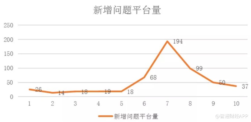 自從監(jiān)管加強行業(yè)規(guī)范和引導(dǎo)后,P2P問題平臺便不斷被爆出。智通財經(jīng)APP了解到,今年6月以來,國內(nèi)新增問題平臺逐漸增多,并在7月份達到最多的194家,但到10月份新增問題平臺的數(shù)量卻已經(jīng)低至37家。也就是說,在新的監(jiān)管強度下,又有一批問題公司得以治理,行業(yè)整合進程已經(jīng)被加速。