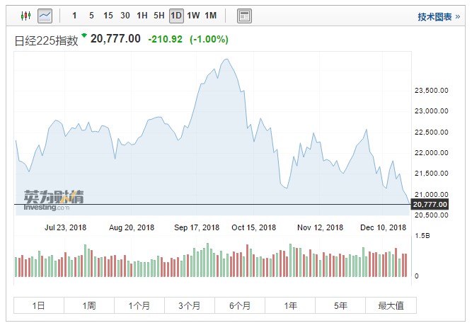 美聯(lián)儲如期加息,同時下調(diào)明年加息預(yù)測,但仍不如市場預(yù)期的鴿派。受此影響,12月20日,日本日經(jīng)225指數(shù)低開近1%,報(bào)20779.93點(diǎn)。