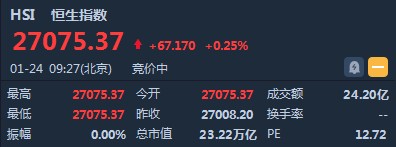 智通財經(jīng)APP獲悉,恒生指數(shù)開盤高開0.25%,報27075.37點。國企指數(shù)漲0.31%,報10663.49點。紅籌指數(shù)漲0.64%,報4328.62點。大市盤前成交24.21億港元。隔夜美股震蕩收高,港股ADR全日偏軟。市場對月底中美談判有所憧憬。