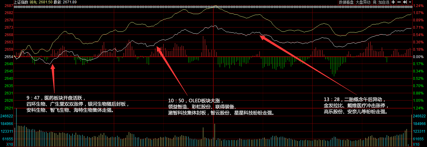 云財經(jīng)訊,兩市今日平開,隨后在醫(yī)藥、次新股的帶領(lǐng)下,創(chuàng)業(yè)板快速走強(qiáng),而主板表現(xiàn)較為弱勢。午后兩市稍有回落,工業(yè)大麻、柔性屏等板塊輪番拉升,市場總體賺錢效應(yīng)不錯。個股漲多跌少,今日漲停75家,跌停1家。板塊普漲,OLED、醫(yī)藥、天津自貿(mào)區(qū)、氟化工等板塊漲幅居前。截止收盤,滬指報2671點(diǎn),漲0.68%;深成指報8010點(diǎn),漲1.15%;創(chuàng)業(yè)板指報1332點(diǎn),漲1.23%。兩市成交較前一交易日放量。