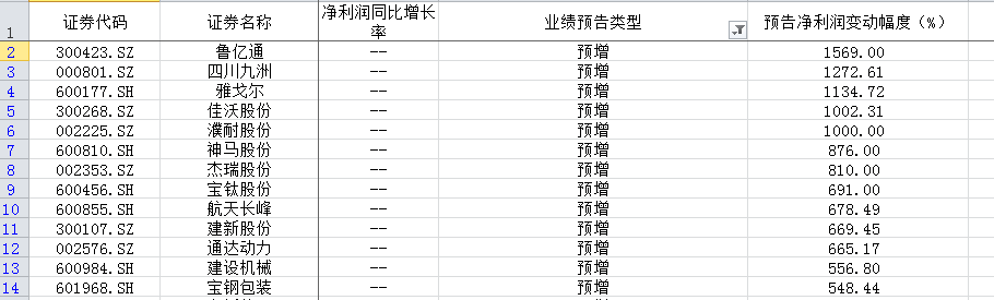 2.年報業(yè)績預(yù)期大幅預(yù)增的個股