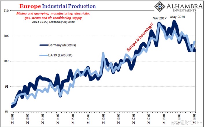 歐盟統(tǒng)計(jì)局對(duì)整個(gè)歐洲工業(yè)生產(chǎn)的估計(jì),包括從德國(guó)收集的工業(yè)生產(chǎn)和重新利用的工業(yè)生產(chǎn)數(shù)據(jù)顯示,歐洲的產(chǎn)量在過(guò)去三個(gè)月中(11月、12月、1月)同比增速均出現(xiàn)下降,觸及2012 -13年經(jīng)濟(jì)衰退以來(lái)低點(diǎn)。