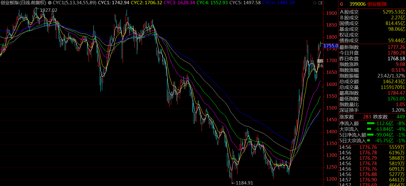 周一市場突破三月份的中樞結構,開啟了新一輪的上漲,市場情緒良好,基本維持了日均百股漲停的規(guī)模。至周四,滬指上漲5.04%報收3246.57點,深成指漲5.14%報收10415.8點,創(chuàng)業(yè)板漲4.94%報收1777.26點。值得留意的是,相較于第一波行情創(chuàng)業(yè)板指數大幅跑贏上證指數來說,這一次代表小盤股的創(chuàng)業(yè)板指數要弱于預期。