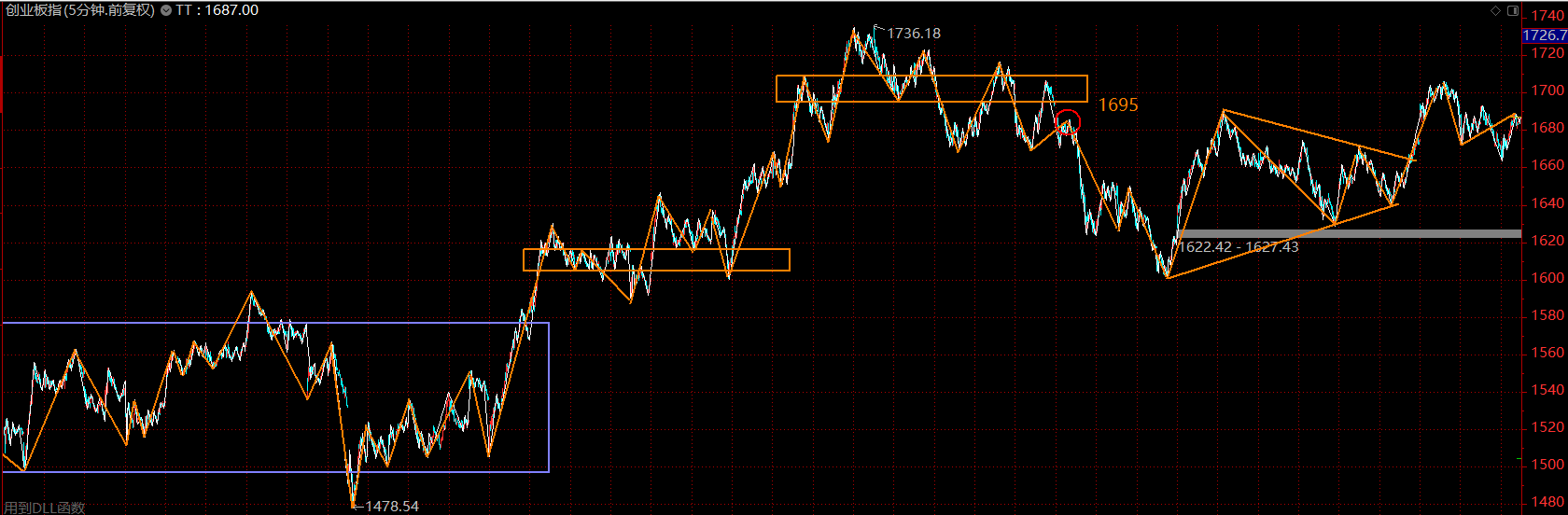 創(chuàng)業(yè)板形態(tài)上是一個三角形收斂突破的回踩,基本認定這里短線整固結束,本周大概率會沖擊前高1736點,盡量持股待漲。點位來看,短線1670點附近較為關鍵。