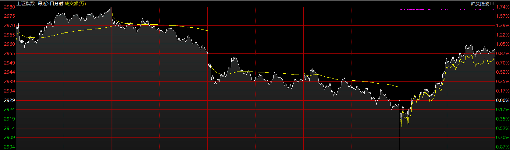 上證指數(shù)又一次站上了2956點,從小級別看,這里短線看2945點支撐力度,撐住了就是五分鐘級別三買,以目前的市場氛圍及外圍情況看,短期應該可以突破3000點。所以本周初投資者可重點觀察2945點的支撐力度來作為自己的操盤依據(jù)。