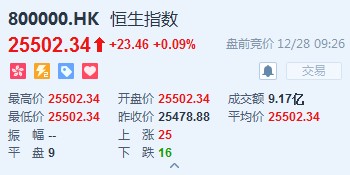 恒生指數(shù)開(kāi)盤(pán)漲0.09%,報(bào)25502.34點(diǎn)。國(guó)企指數(shù)漲0.33%,報(bào)10024.18點(diǎn)。紅籌指數(shù)漲0.42%,報(bào)4103.17點(diǎn)。大市盤(pán)前成交9.17億港元。隔夜美股尾盤(pán)反彈,道指盤(pán)中最多跌超600點(diǎn),尾盤(pán)突現(xiàn)反轉(zhuǎn),收漲逾1%。