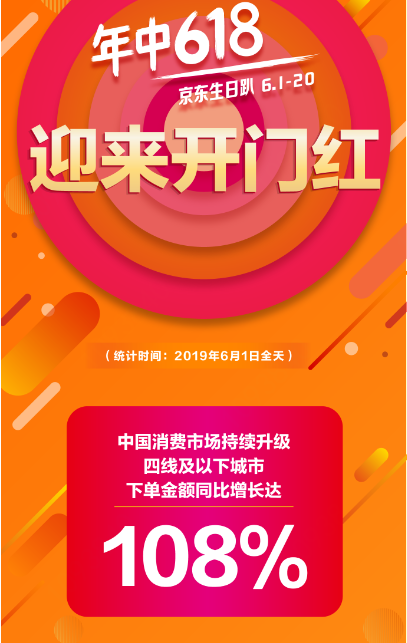 深圳新聞網(wǎng)2019年6月3日訊 6月1日零時(shí)剛過,京東后臺(tái)銷售數(shù)據(jù)顯示訂單量就呈現(xiàn)出井噴狀態(tài),一年一度的京東618全球年中購(gòu)物節(jié)正式開啟。京東大數(shù)據(jù)顯示,6月1日全天四線及以下城市下單金額同比增長(zhǎng)達(dá)108 %。