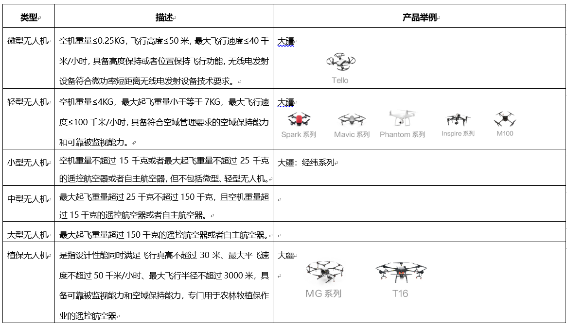 (微、輕、小、中、大型無人機(jī)分類圖 )