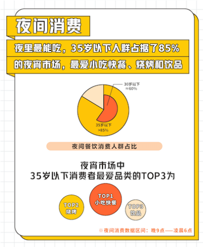 夜間消費(fèi)在周末餐飲消費(fèi)中備受年輕人青睞?!?020周末餐飲堂食消費(fèi)趨勢(shì)洞察》顯示,35歲以下群體是周末夜間消費(fèi)的主力,占比近九成,且最愛(ài)小吃快餐、燒烤和飲品三大品類。